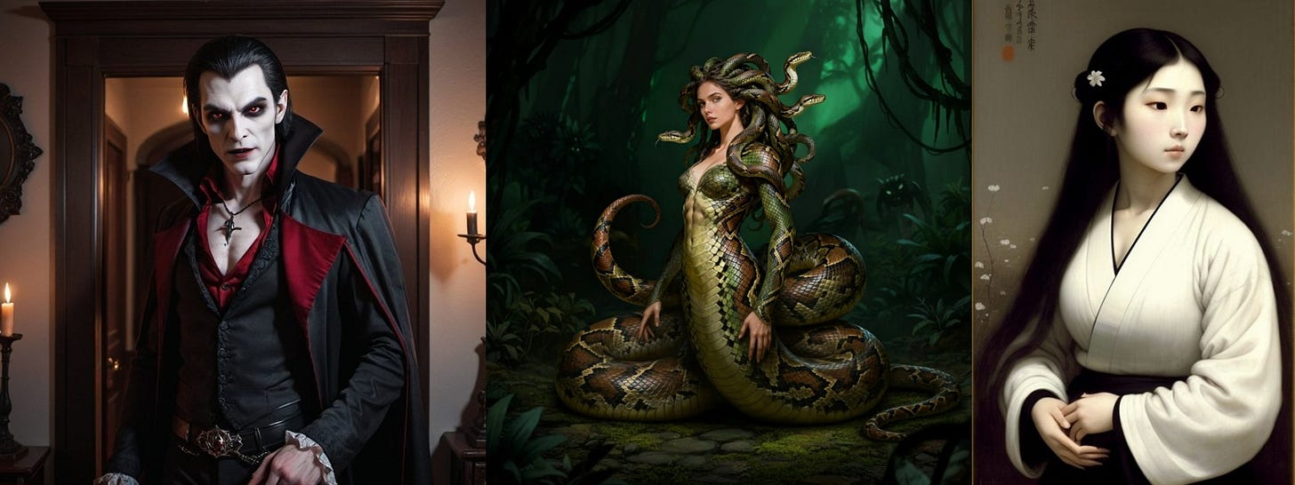 Vampire, Romantic Type Petrifier, Gorgon Type Phantasm, Yurei Type